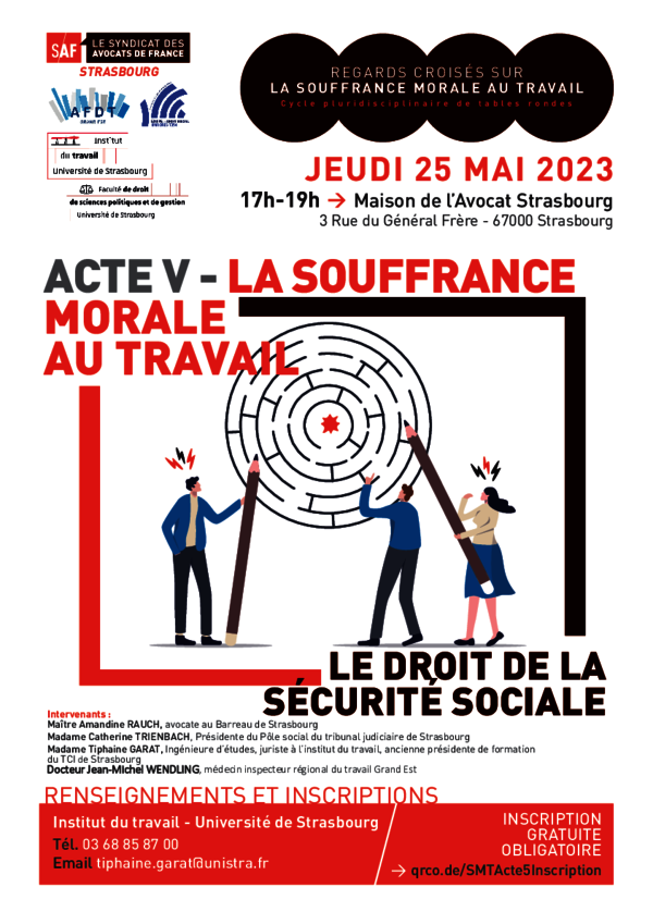 REGARDS CROISÉS SUR LA SOUFFRANCE MORALE AU TRAVAIL : LE DROIT DE LA SECURITE SOCIALE Ce cycle de tables-rondes entend offrir un lieu d’échanges privilégié sur cinq grandes questions que soulève le thème de la souffrance morale au travail. Ces rencontres, à vocation pluridisciplinaire, s’adressent à…