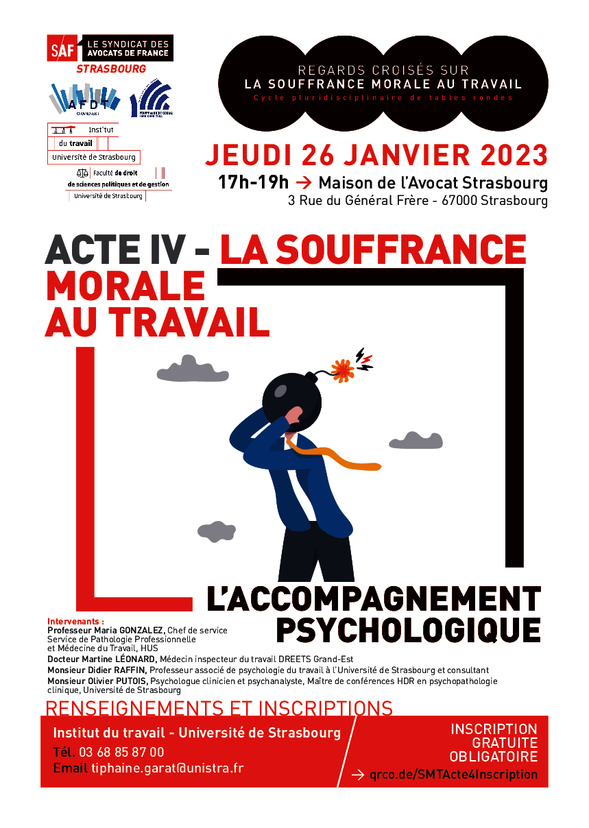 > Jeudi 2 mars 2023, 17h-19h | ACTE V : La souffrance morale au travail et le droit de la Sécurité sociale