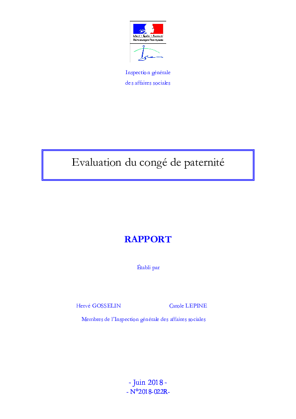 Evaluation du congé paternité, rapport de l’IGAS établi par Hervé Gosselin et Carole Lépine (juin 2018)