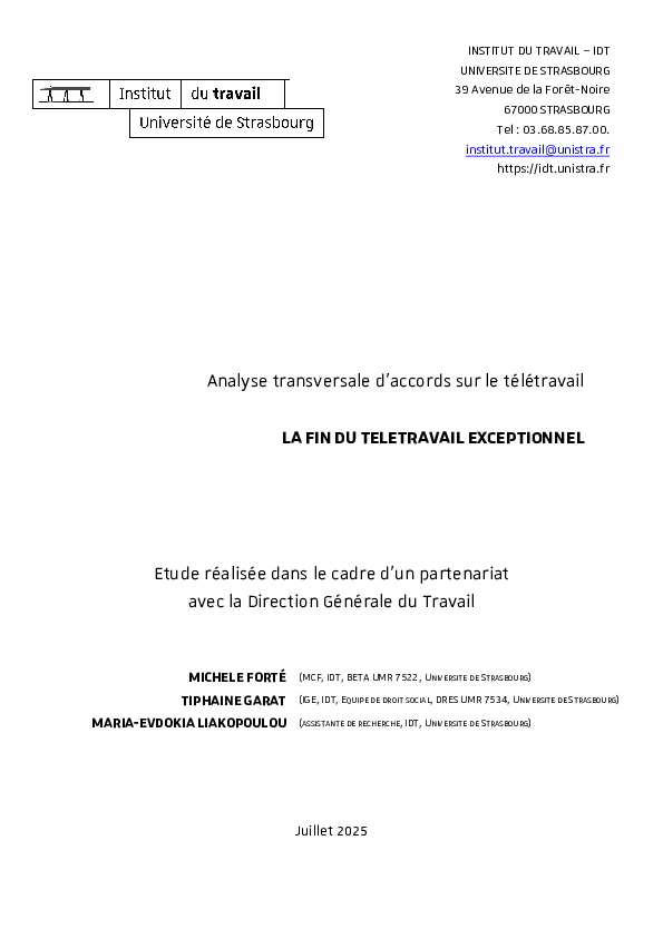 A travers l’étude de 20 accords collectifs d’entreprise synthétisés et analysés sur le site Dialogue social en 2023 et 2024, l'Institut du travail de Strasbourg, dans le cadre d'un partenariat avec la Direction Générale du Travail, propose de faire un point d’étape sur la manière dont les partenaires sociaux se saisissent du thème de télétravail.
